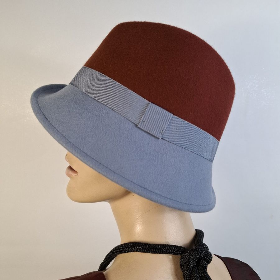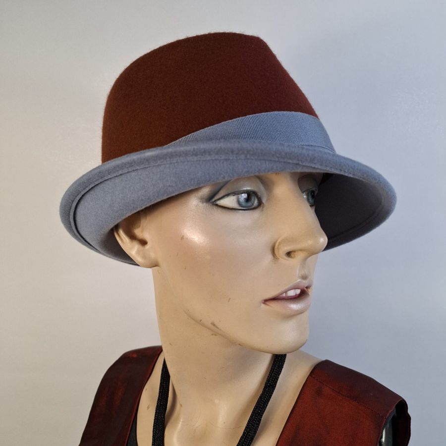 Der kleine sportliche Damenhut ist aus 100% Wollfilz und optimal zu sportlich,