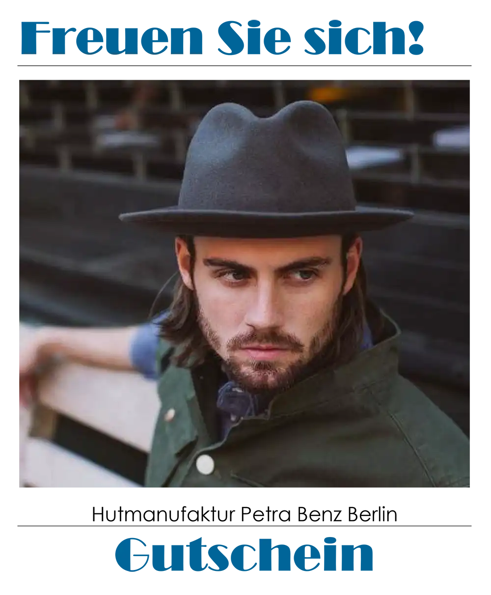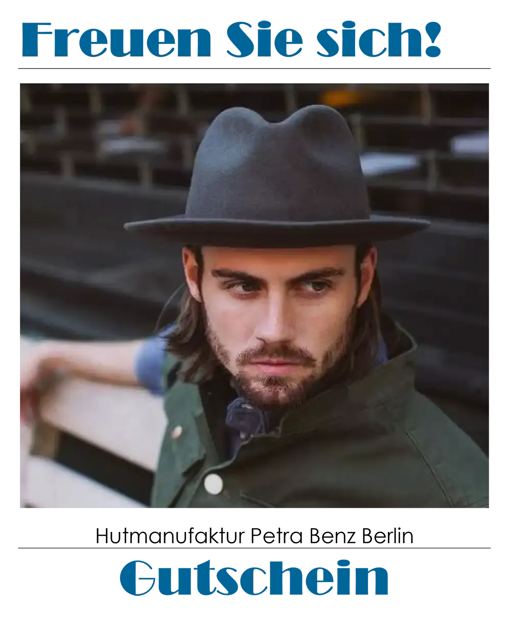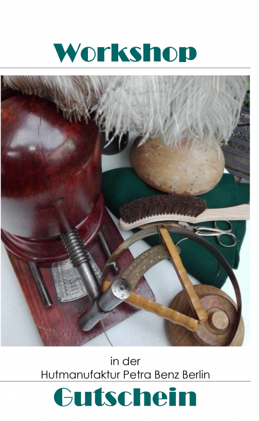 An jeweils einem Sonntag im Monat lade ich zum Workshop in mein Atelier ein. Außer Liebe zum Hut und Motivation müssen Sie keine Voraussetzungen mitbringen. Gerne unterstütze ich Sie mit meiner Erfahrung bei der Fertigung Ihres Hutes. Für Rückfragen stehe ich Ihnen gerne zur Verfügung.