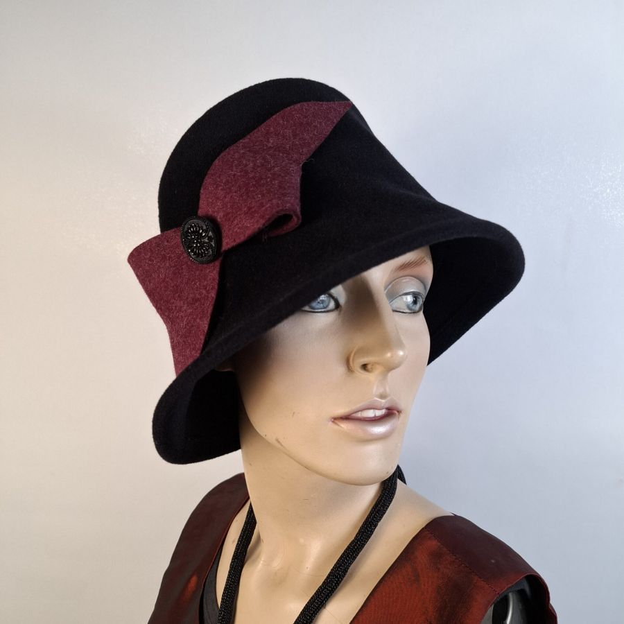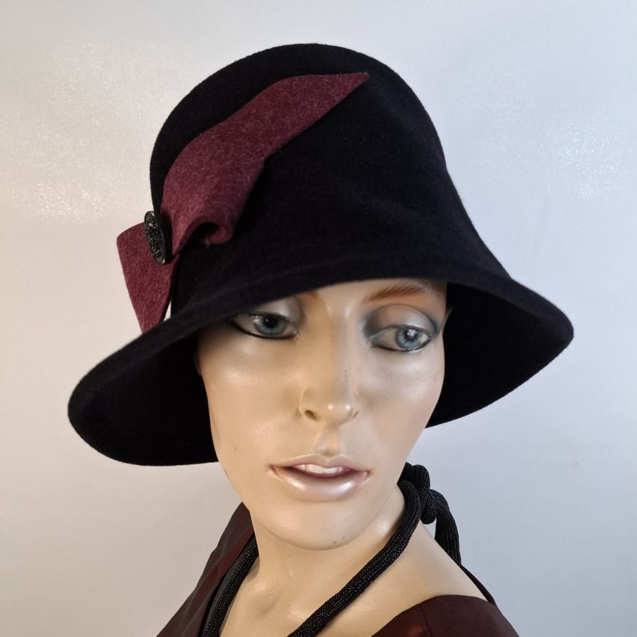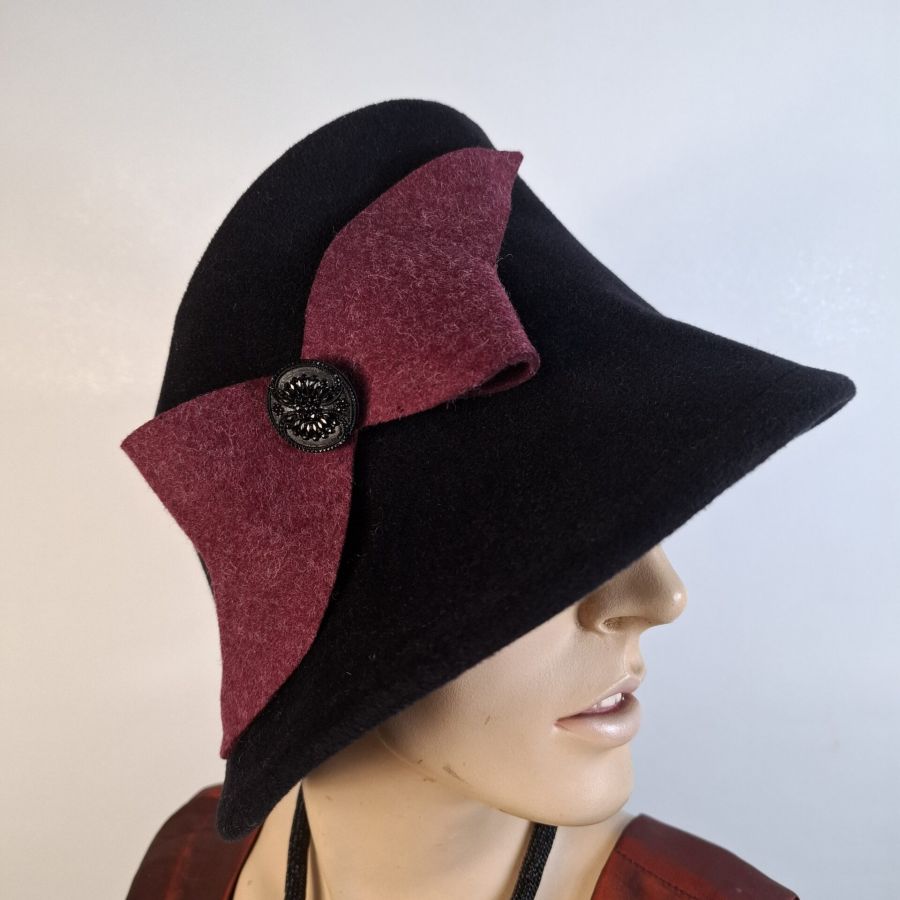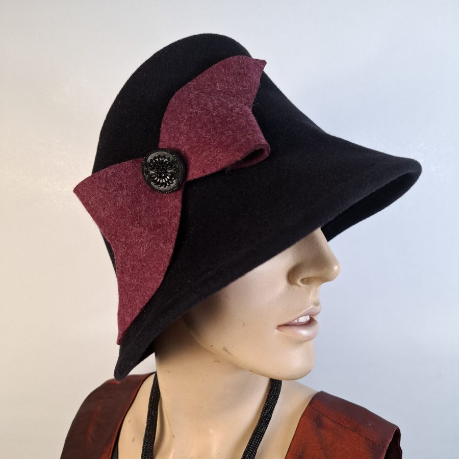Der asymetrische Damenhut aus 100% Haarfilz ist gut zu sportlich eleganter