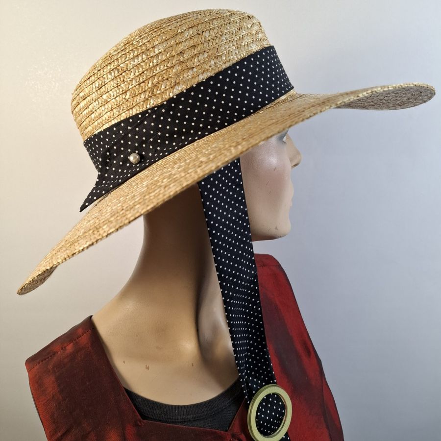 Der Borten Strohhut ist ein idealer Begleiter im Alltag und für lange Strand Spaziergänge. Durch das aus 100% gefertigte Baumwollband und der Vintage Schließe aus Perlmut weht er Ihnen nicht vom Kopf.