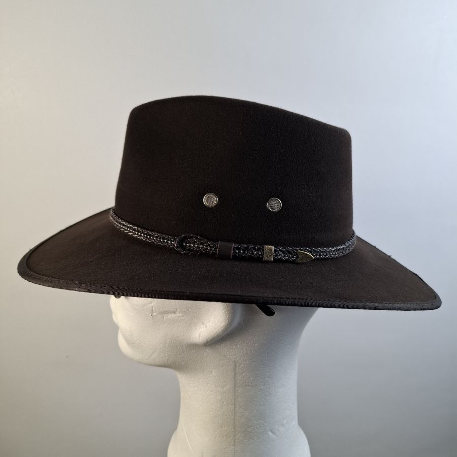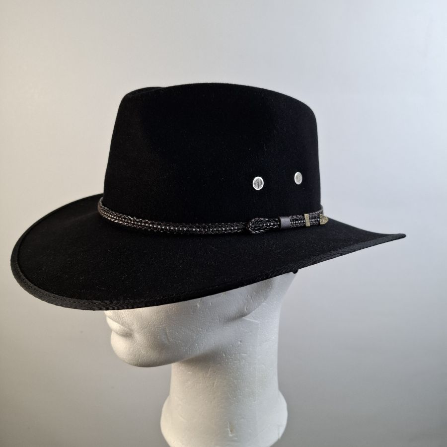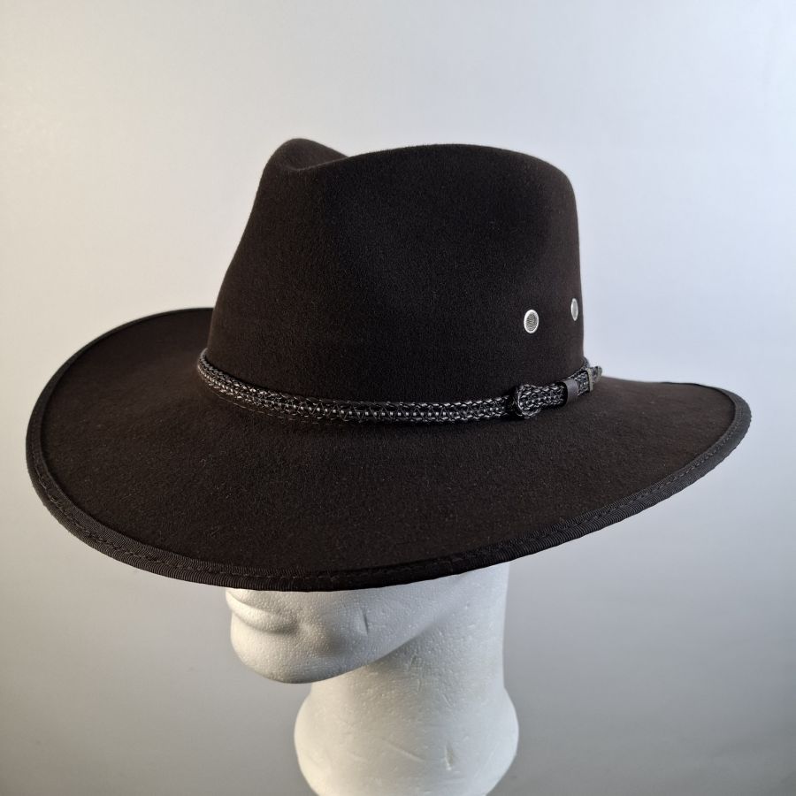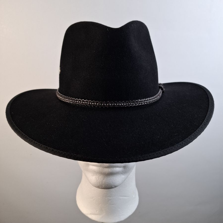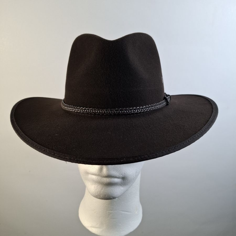 Der Herrenhut mit breiter Krempe ist aus feinem Wollfilz gefertigt und in den Größen 56 – 61 erhältlich.