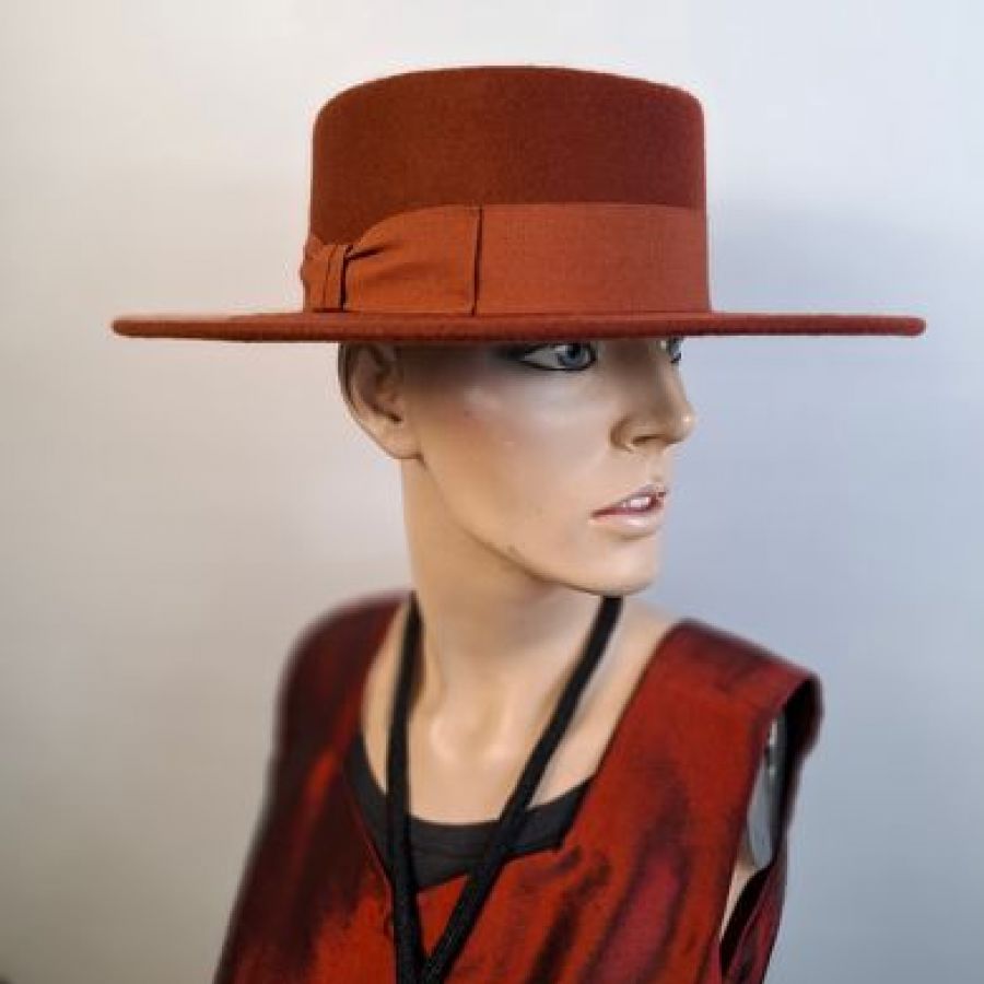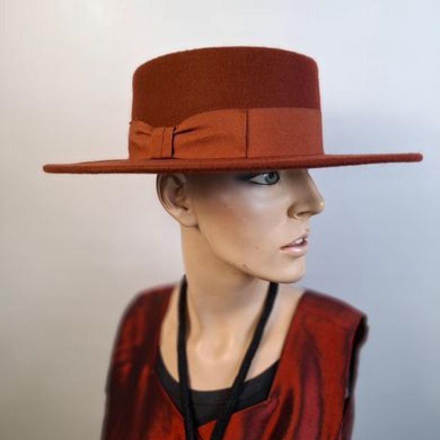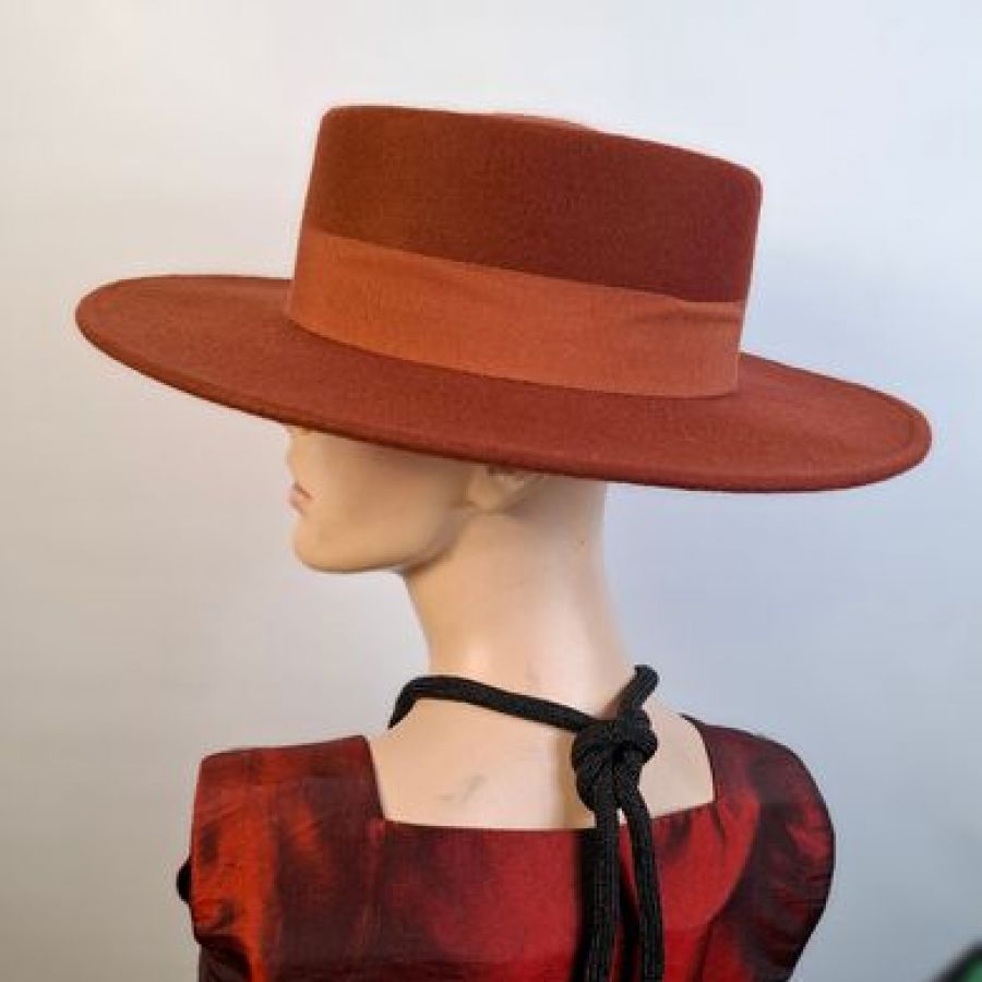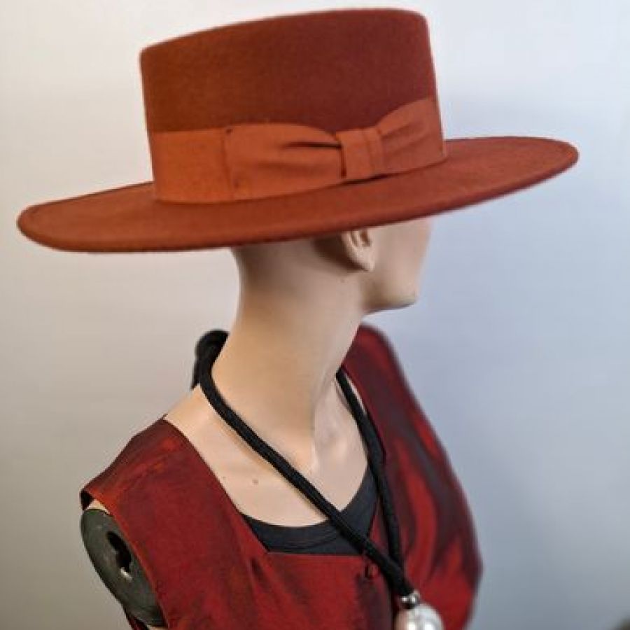 Der braune Spanier ist aus 100% Wollfilz und in den Größen 57 – 59 tragbar.