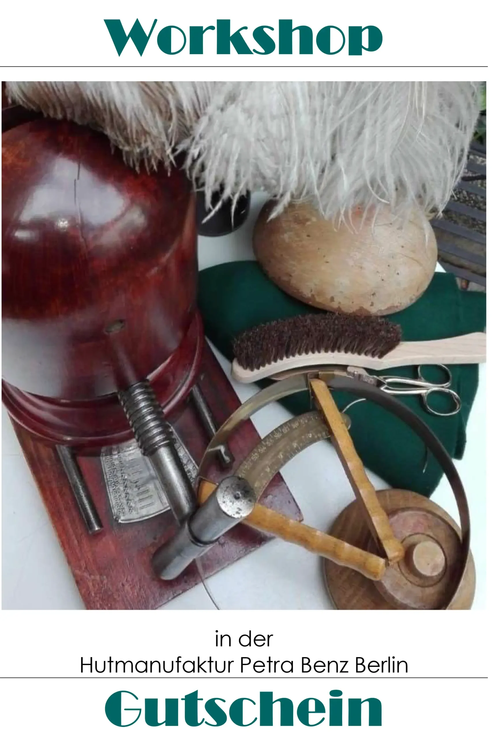 In meiner kleinen Hutmanufaktur biete ich an verschiedenen Sonntagen Hutmacherworkshops an. Sie können bei mir Ihren Traum Hut herstellen und ich weihe Sie in die Künste der Hutmacherei ein. Die Workshops finden von 10:00 Uhr bis 18:00 Uhr statt. In dieser Zeit fertigen Sie Ihren Hut und lernen alle dafür nötigen Schritte. Die Kursgebühr beträgt € 210,00 zzgl. Materialkosten. Falls Sie noch Informationen benötigen, kontaktieren Sie mich gerne telefonisch oder per mail.